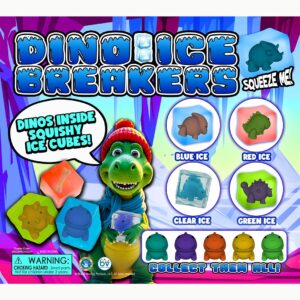 The all NEW DINO ICE BREAKERS is here. Squishy Dinosaurs trapped in squishy ice cubes! They come in a variety of fun colors in both the ice and the dino’s trapped inside. Fun to throw, squeeze, stack , or break the dino’s out!