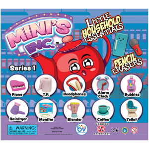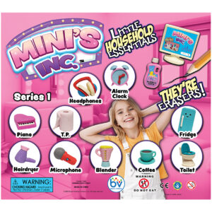 Mini’s Inc is HERE! These household essentials are pencil erasers and great mini items!  Look for the ULTRA RARE & Bubble Gum scented dish soap and toilet paper. In addition, there is the CRAZY RARE Golden Trophies of the piano and computer!  Collect Them All!