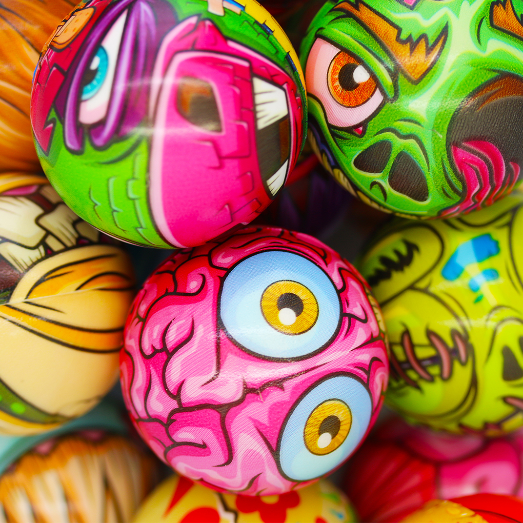 When your customers see the colorfully twisted Bad Balls in your machines, they won’t be able to resist collecting all of their dynamic expressions! Each ball is fully colored, squishy and bouncy. No capsules needed, they vend perfectly on their own, and add tons of color and fun to your display!