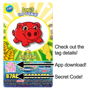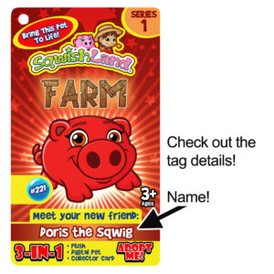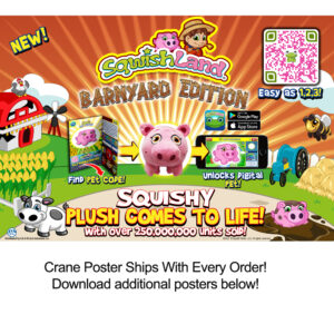 Collect all 8 characters from the popular Sqwishland farm region: Sqwig (pig), Sqwooster (rooster), Sqweep (sheep), Sqwull (bull), Sqwow (cow), Sqworse (horse), Sqwoat (goat), and Sqwee (bee). Each case contains 24 regular series characters and 10 rare versions along with GLOW-IN-THE-DARK variations. Each character comes with a special and unique corresponding hangtag with a code to bring your character to life on the popular Sqwishland app, Sqwishland Connect (FREE on Google PLAY and Apple App Store). Â More than just plush, and guaranteed to have your customers coming back to complete their farm, Sqwishland is a virtual world and online game aimed primarily at children. It revolves around collecting and caring for cute, squishy characters called Sqwishlanders. Players can adopt these virtual pets, play games with them, and even customize their virtual habitats.